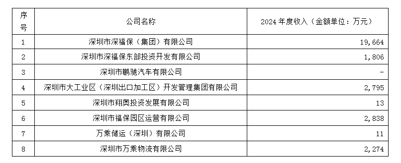 本项目包含集团范围内8家公司〔深圳市意昂体育(集团)限公司(含分公司)、深圳市万乘物流有限公司、深圳市万乘储运有限公司、深圳市园区运营有限公司、深圳市意昂体育东部投资开发有限公司、深圳市大工业区开发管理有限公司、深圳市鹏驰汽车有限公司、深圳市翔奥投资发展有限公司〕打包服务。2024年度各公司大概的收入情况如下表:
